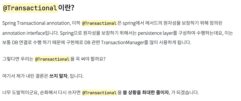트랜잭션 어노테이션을 사용하지 않는 것이다! ☠️
