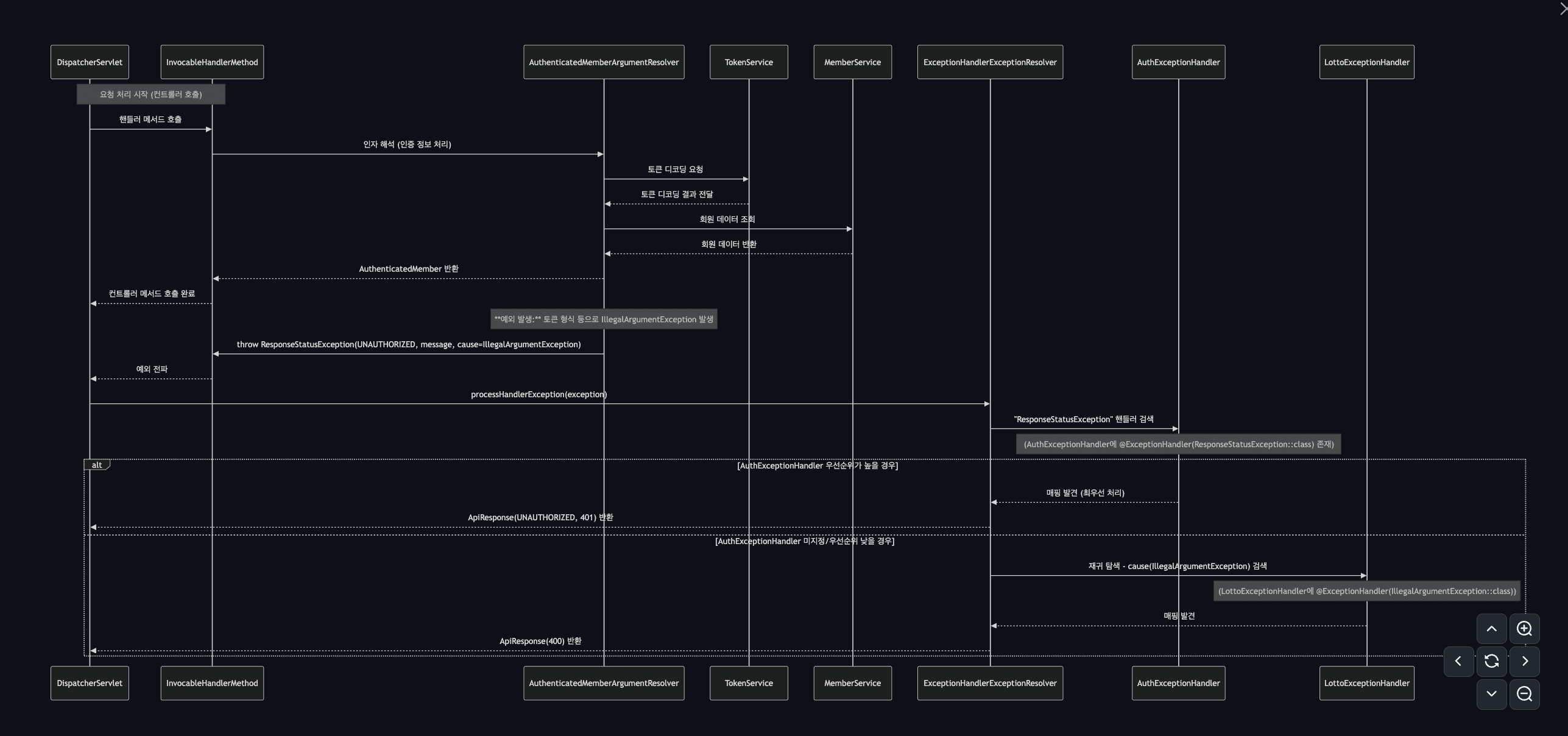 }그리고, ExceptionResolver 들을 통해 처리를 할 수 있는지 찾습니다.