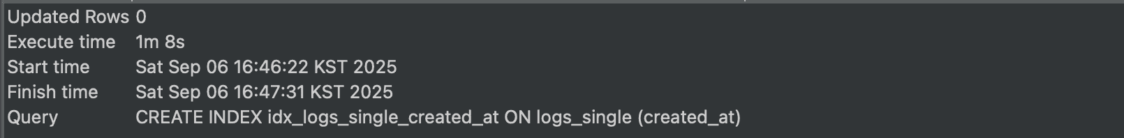 WHERE created_at >= '2024-09-01 00:00:00 KST' AND created_at < '2024-10-01 00:00:00 KST';A table using created_at as the partition key